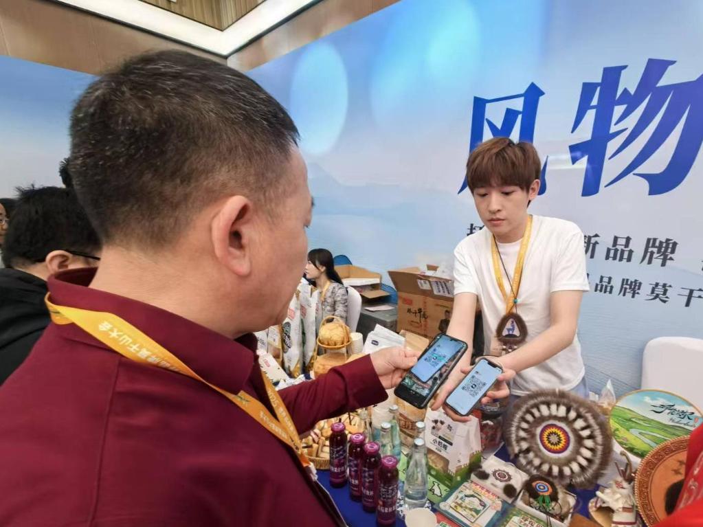 “您看这太阳花的针脚,每一道都是鄂温克族人跟太阳学的纹样。”工作人员话音未落,鄂温克族手工太阳花前已有举着手机扫码付款的嘉宾。