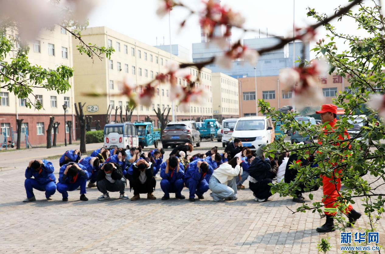 5月12日,内蒙古自治区呼伦贝尔东北阜丰生物科技有限公司进行地震逃生应急演练。新华网发(韩颖群 摄)