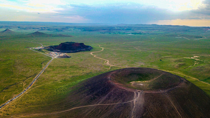 依托乌兰哈达火山群这一核心资源,察右后旗建成火山草原生态旅游区,火山研学、星空露营等新业态迅速崛起。“您可以策马奔腾在草原上,感受风的速度与自由;可以探访古老的遗址,触摸历史的脉络;可以漫步在火山脚下,聆听地球的心跳;也可以在民宿中体验察右后旗人民的热情,品尝纯正火山草原牛羊肉。”郑珺描绘道。
