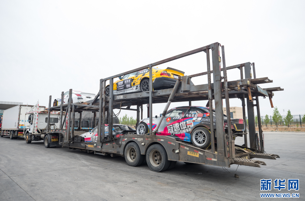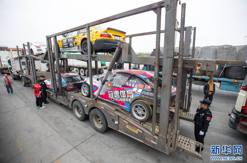 5月13日,中国汽车飘移车队从二连浩特公路口岸入境。新华网发(郭鹏杰 摄)