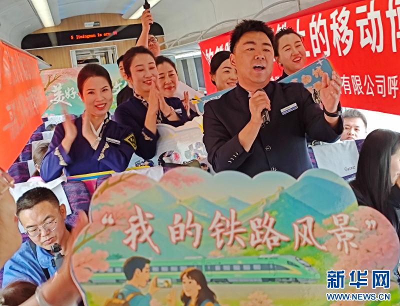 在鄂尔多斯开往集宁南的C646次城际列车上,中国铁路呼和浩特局集团公司呼和浩特客运段、内蒙古博物院志愿者团队创新推出“高铁上的移动博物馆”,通过历史文化讲解、服务文化展示、列车文艺演出、非遗互动体验等形式,让“复兴号”列车成为传播北疆文化的新载体,旅客在尽览旅途美景、畅享优质服务的同时,感受到浓厚的北疆文化氛围。