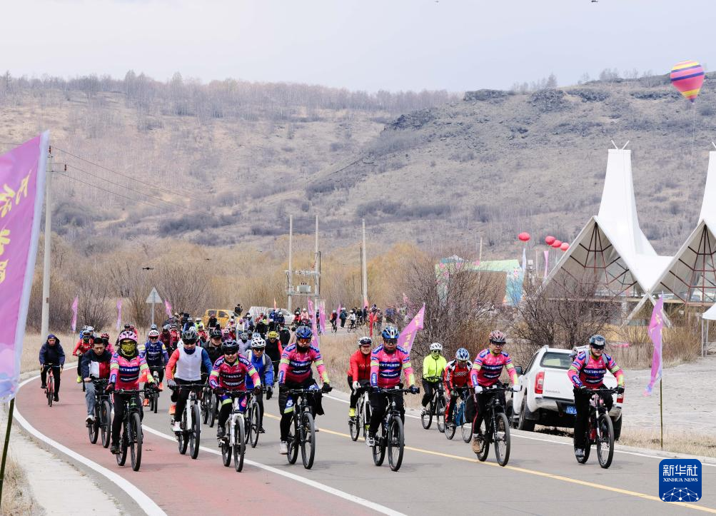 5月19日,在内蒙古自治区兴安盟阿尔山市奥伦布坎景区,游客们参加骑行活动。