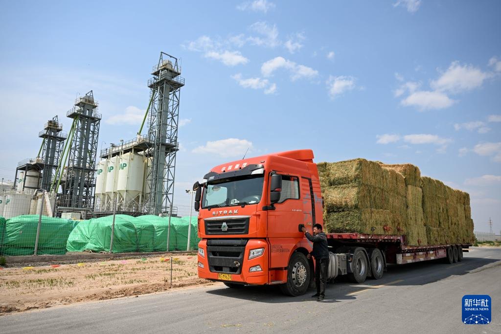 5月22日,在赤峰市阿鲁科尔沁旗,一辆满载牧草的货车准备启程运输。