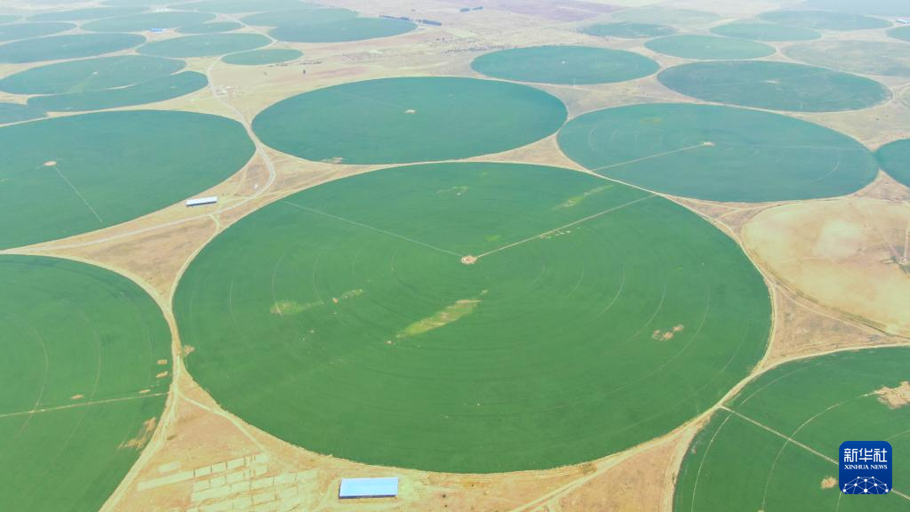 这是5月22日拍摄的赤峰市阿鲁科尔沁旗境内的优质牧草种植基地(无人机照片)。
