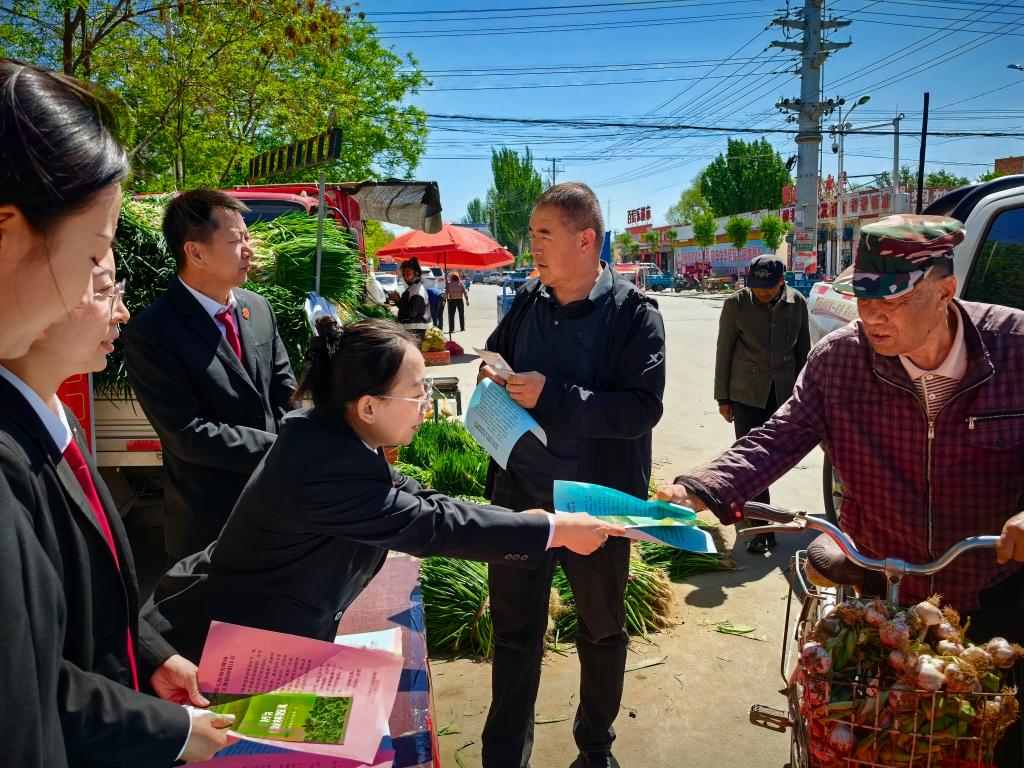 在线下宣传方面,五原县人民法院多点发力,利用办公大楼和基层法庭的公示栏、大厅、走廊等显著位置,张贴海报40余张,悬挂主题条幅10余条,在办公大楼大厅LED显示屏循环播放普法短视频。在城区繁华商圈与各乡镇集市等人流密集处,设立10余个普法宣传点,发放《五原县人民法院保护林草湿资源倡议书》等资料500余份,并设置法律咨询台,为群众解答非法开垦、林地边界争议等问题。