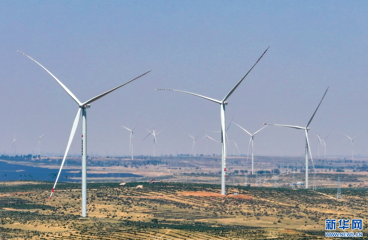5月23日拍摄的鄂尔多斯市鄂托克前旗30万千瓦上海庙风电场(无人机照片)。新华网发(王正 摄)