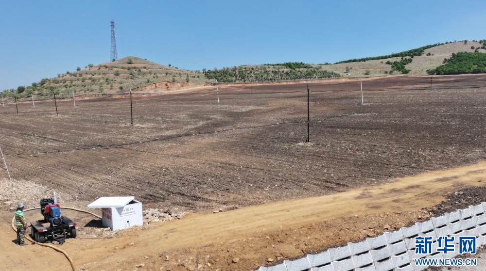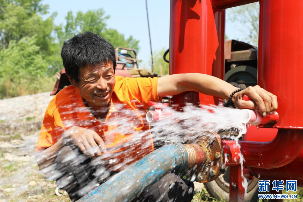 5月27日,内蒙古自治区扎兰屯市成吉思汗镇河口村田间,农民为浅埋滴灌水肥一体化供水管注水。新华网发(韩颖群 摄)