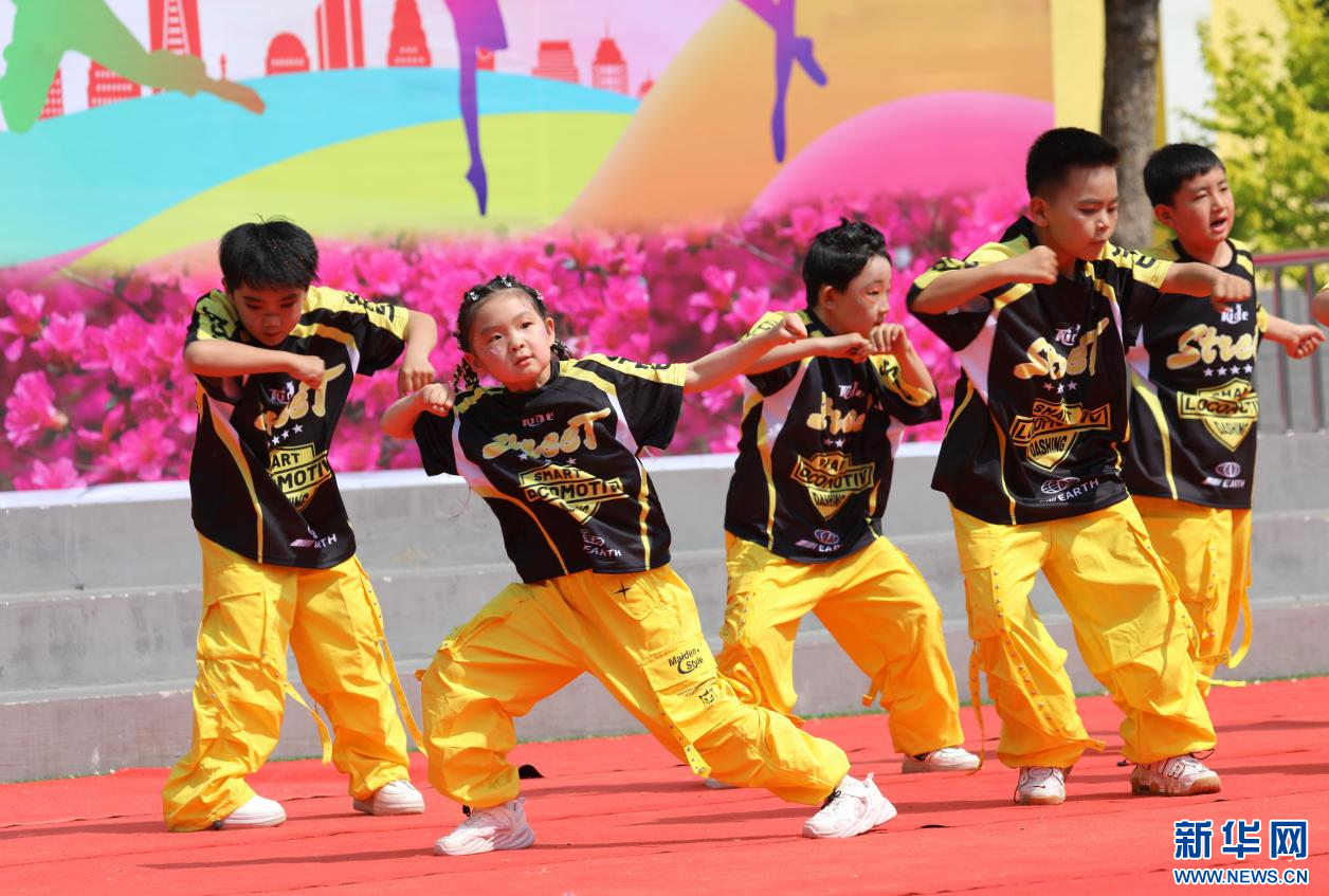 5月28日,内蒙古自治区扎兰屯市实验小学校园文化艺术节上,学生们进行街舞蹈表演。新华网发(韩颖群 摄)