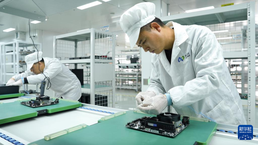 2025年1月20日,工人在位于呼和浩特市和林格尔新区的内蒙古百川数字科技有限公司内生产服务器。新华社发(张家辉摄)