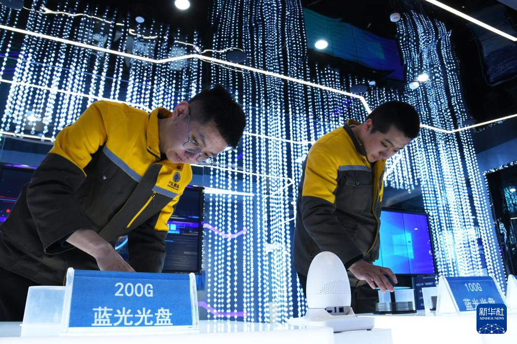 2025年5月12日,工作人员在位于内蒙古自治区乌兰察布市的中弘紫晶乌兰察布智算中心整理蓝光光盘。新华社发(郭小燕摄)