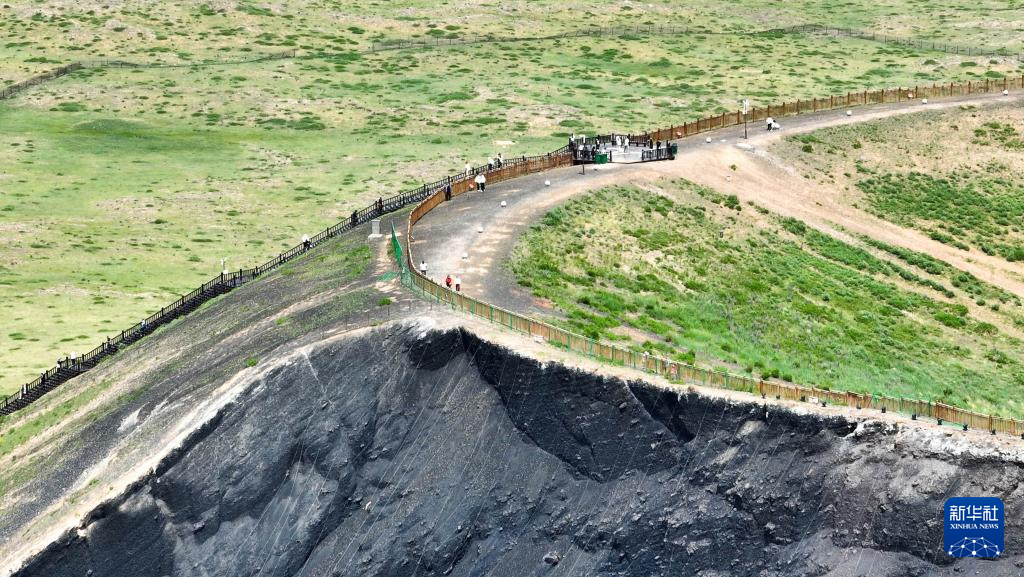 6月17日,游客在乌兰哈达火山地质公园3号火山观景台游览(无人机照片)。