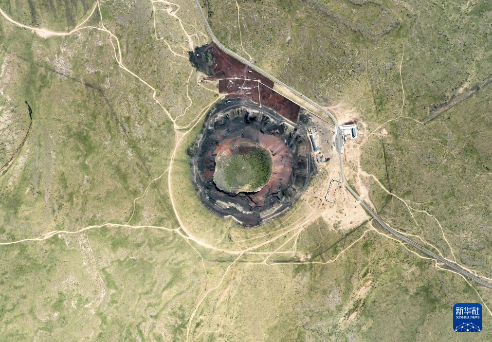 6月17日拍摄的内蒙古乌兰察布市察哈尔右翼后旗内蒙古乌兰哈达火山地质公园6号火山(无人机照片)。