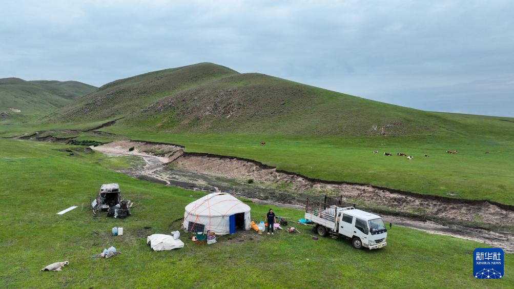 15日上午,雨还在时断时续地下着,彩恩朝格图一家终于顺利抵达了夏营地。蒙古包是他一周前就搭好的,现在可以“拎包入住”,娜布其开始准备早饭。至于牛羊,它们早就走到了不远处的山坡上,自由自在地吃着鲜美的牧草。