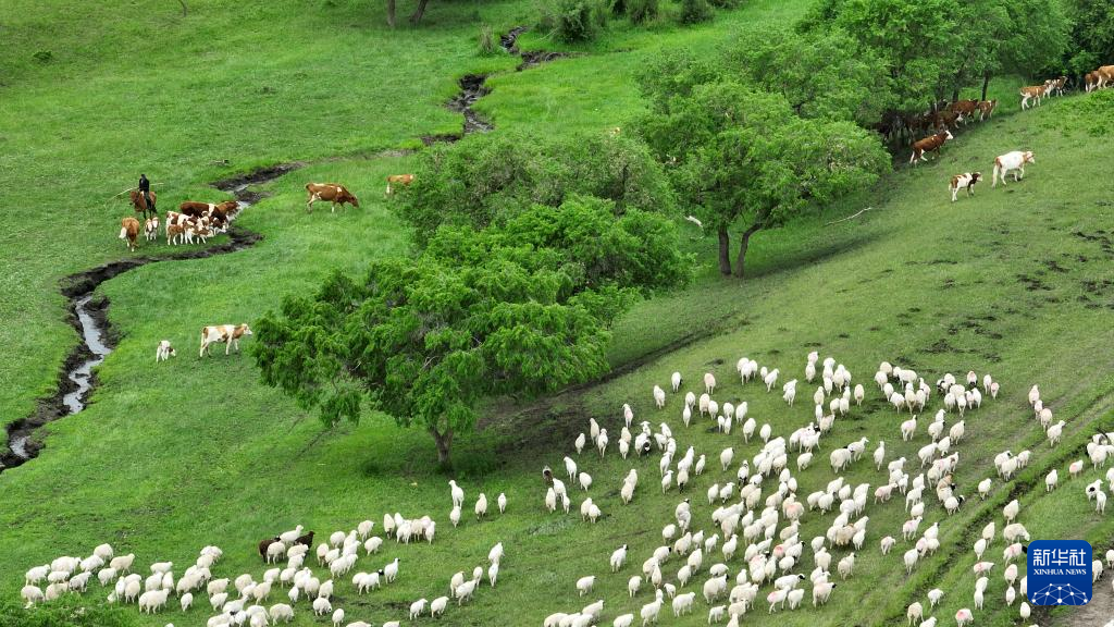 6月16日清晨,55岁的牧民彩恩朝格图和妻子娜布其在自家夏营地的蒙古包醒来后,没有急着去给70多头牛和400多只羊准备草料,而是悠闲地烧水熬茶,准备早餐。因为牛羊们正在一眼望不到边的草原上吃着新鲜的牧草,无需他们操心。