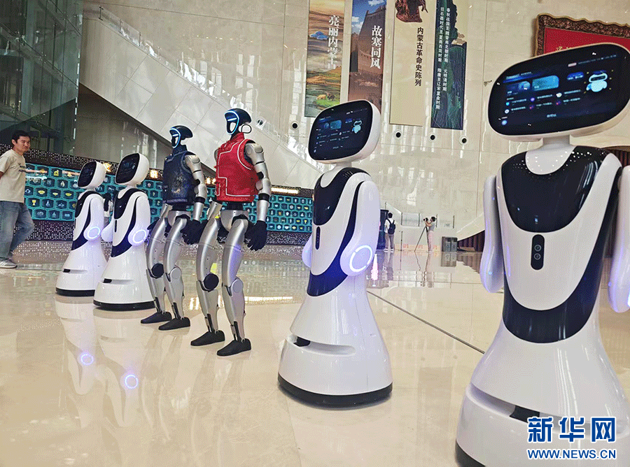 内蒙古博物院新馆内服务于观众的智能馆员“蒙小博”。新华网 徐红梅 摄
