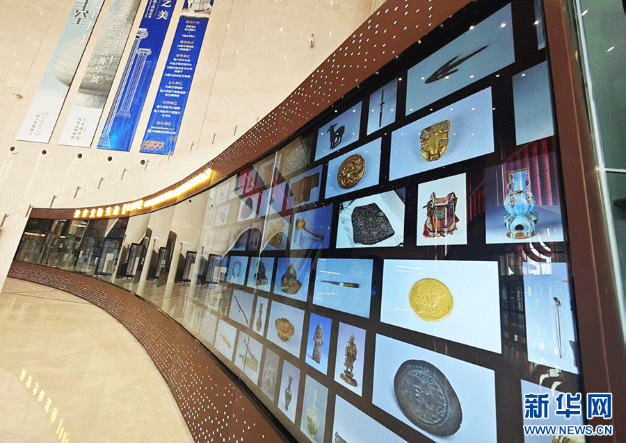 内蒙古博物院新馆大厅内的20米数字文物“魔屏”。新华网 徐红梅 摄