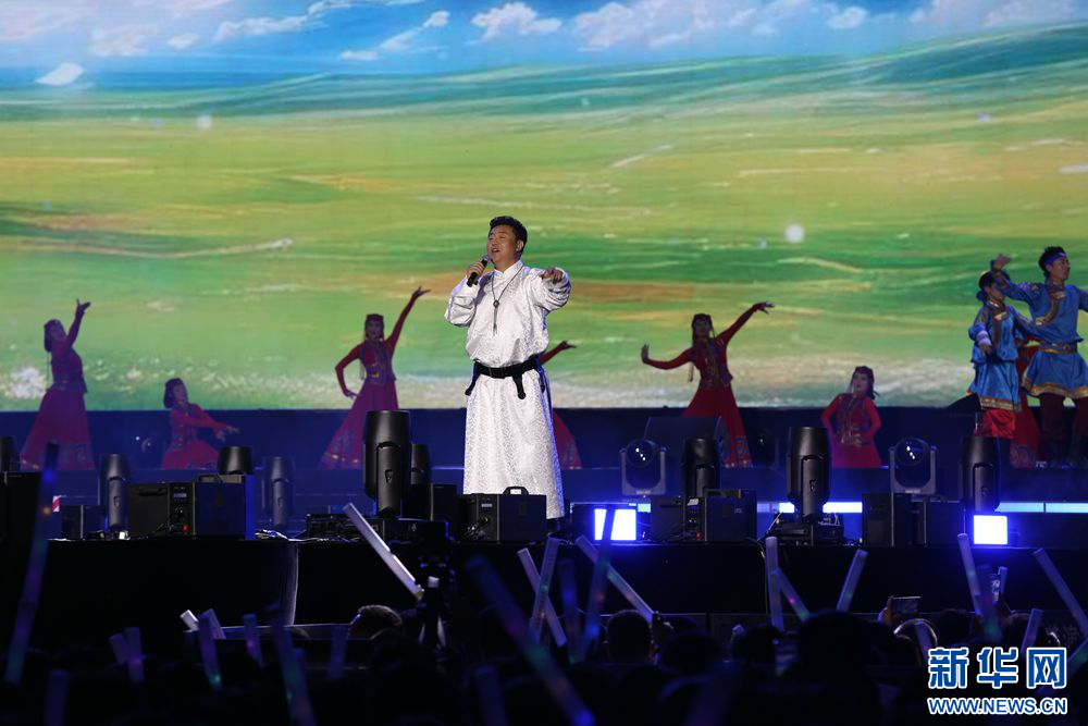 新华网呼和浩特6月21日电(石毅)6月21日,暮色四合,晚霞绽放,五彩绚烂的灯光照亮呼和浩特体育场,这里歌声飞扬,妙舞蹁跹,一场精彩绝伦的视听盛宴正在拉开北疆文化活动季的大幕。