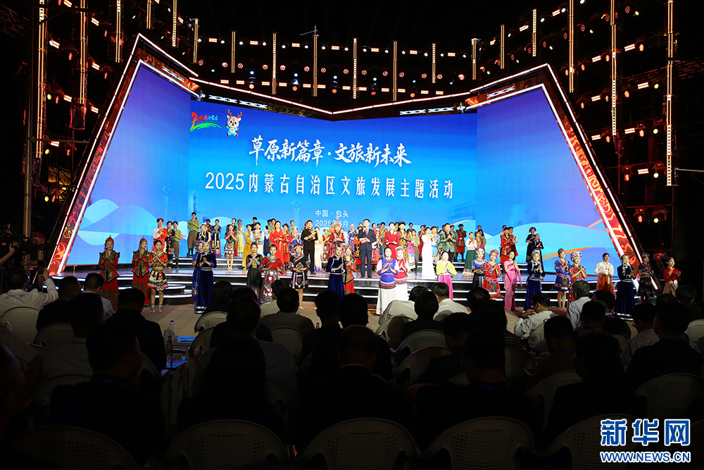 新华网呼和浩特6月25日电(石毅)夏日的内蒙古,草木葱茏,山水锦绣。6月22日晚,2025内蒙古自治区文旅发展主题活动在包头市开幕。来自全国各地的文旅嘉宾、文旅行业重点企业、知名专家学者、艺术家代表等,循着文旅融合节拍,共赴这场“草原新篇章·文旅新未来”的盛会。
