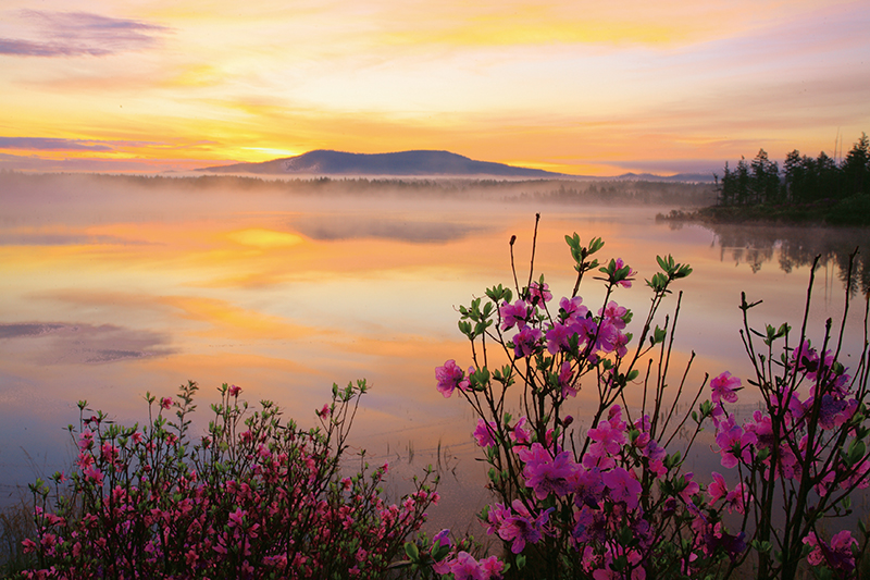 杜鹃湖畔,初夏的杜鹃花如火如荼,粉红花瓣飘落湖面,与倒映的云影交织,宛若一幅流动的印象派画作。