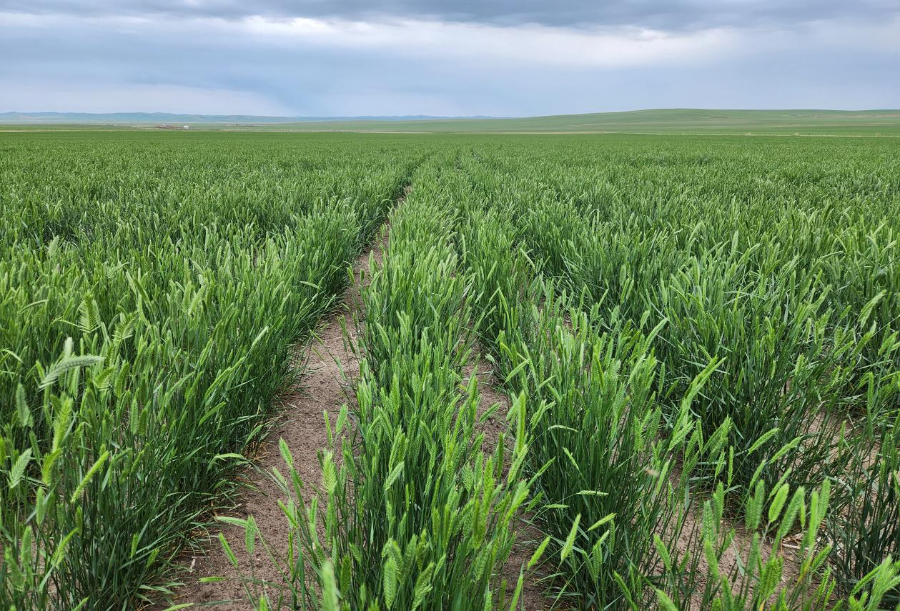 乌拉特中旗优质种源繁育基地9000亩蒙农1号蒙古冰草原种田。