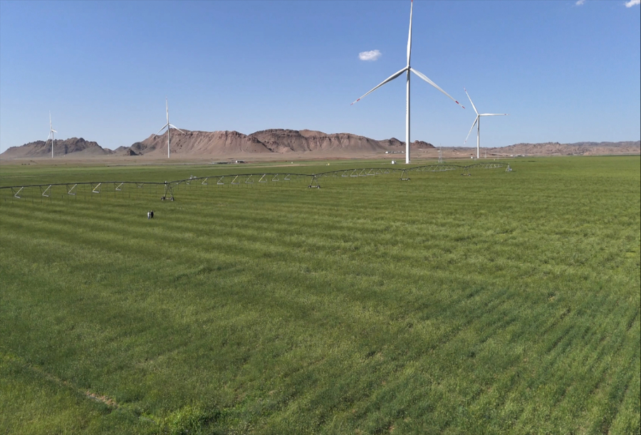 2024年,蒙草生态在巴彦淖尔市乌拉特中旗新忽热苏木乌兰朝鲁嘎查开展风电光伏一体化工程沙化土地综合治理,选用蒙农1号蒙古冰草等乡土草种科学治沙,取得良好成效。应用在项目中的冰草品种,产自蒙草生态在当地建设的优质种源繁育基地,防沙治沙用种做到了“可追溯、有保障”。