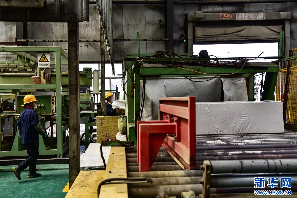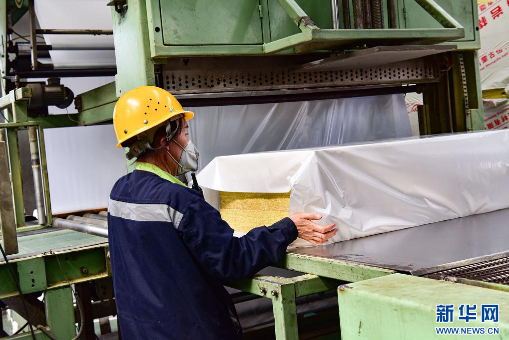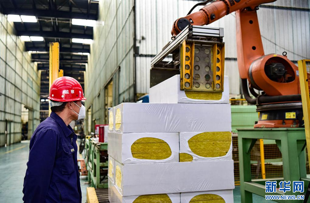 7月1日,机械臂在岩棉生产线上进行成品吊装作业。