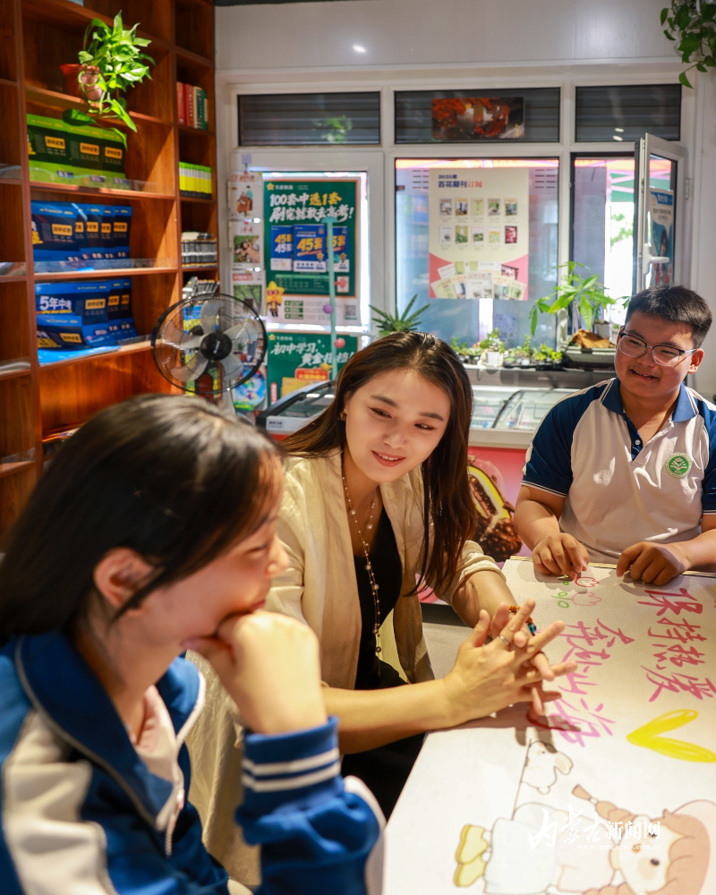 无偿提供通讯工具,方便孩子及时联系家人;常备打气筒,随时为自行车、电瓶车充气;微波炉静候,让冰冷的餐食重新热气腾腾;急救包应对突发小意外;辟出明亮空间,供学生安心阅读、写作业,或静静等待家长到来……呼和浩特市第三十八中学旁的新城区奋斗科技图书店,远不止是书籍的世界,更是孩子们风雨兼程路上的温暖驿站。
