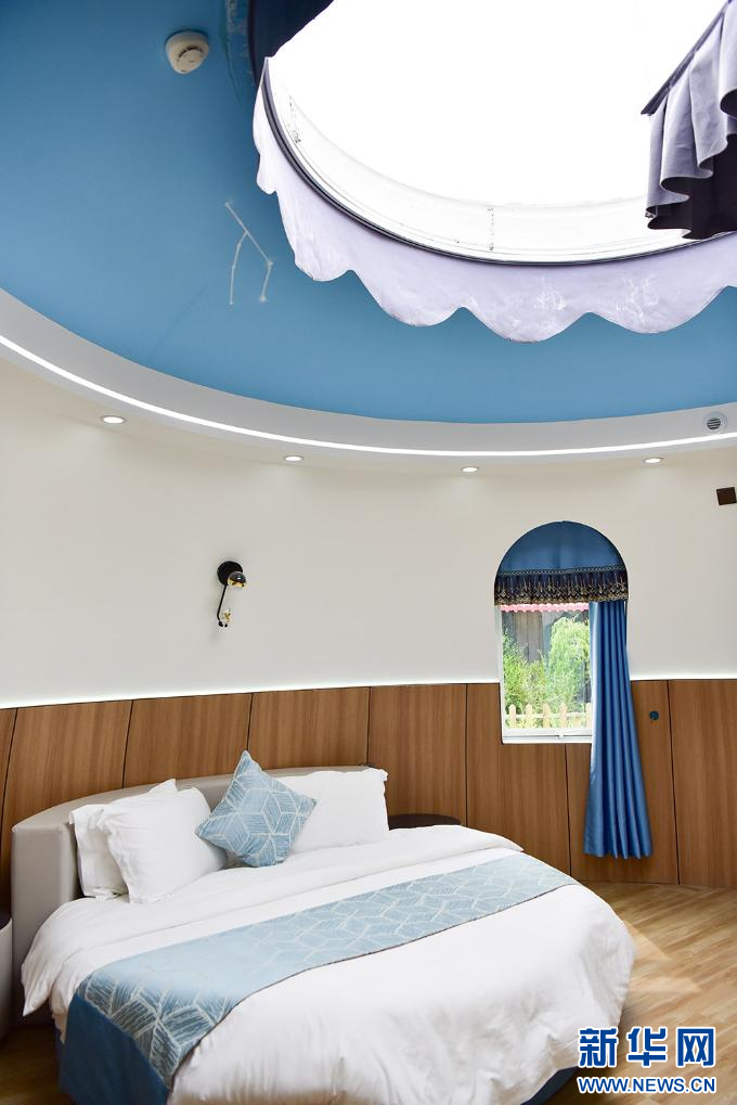 7月2日在阿尔泰七台旅游景区拍摄的亲子星空屋。