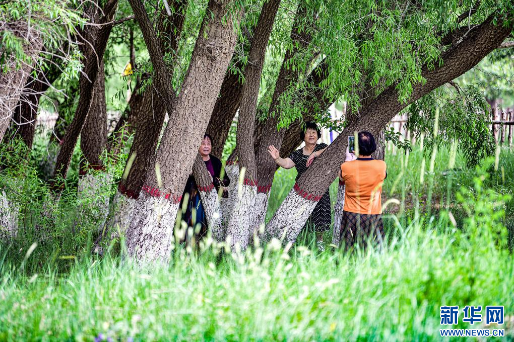 7月2日,游客在阿尔泰七台旅游景区拍照。