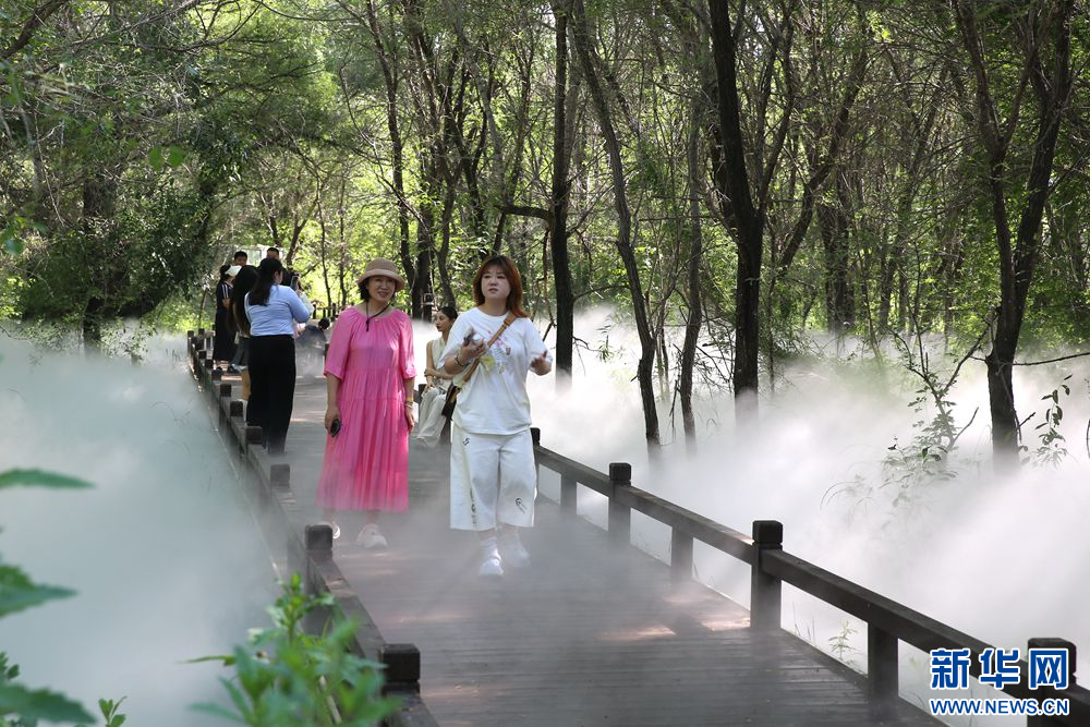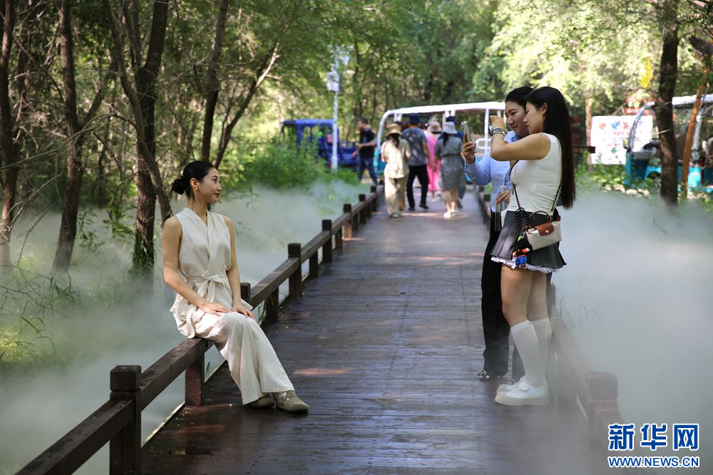 7月6日,游客在乌兰浩特洮儿河国家湿地公园游玩。新华网 石毅 摄