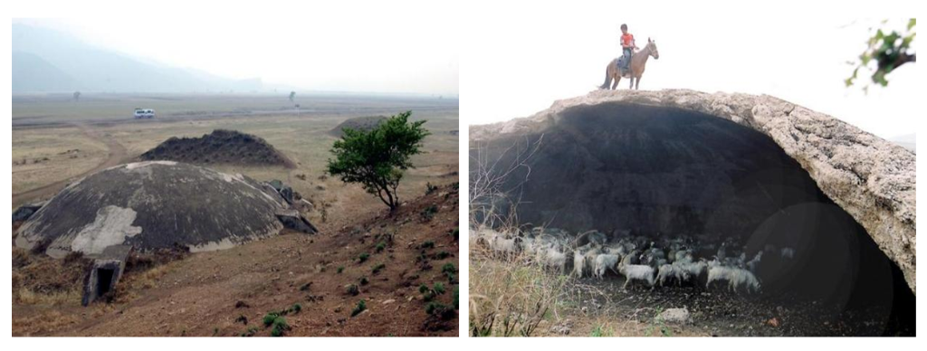 左图:兴安盟科尔沁右翼前旗好仁苏木境内残存的侵华日军飞机库群(2003年8月8日拍摄)。