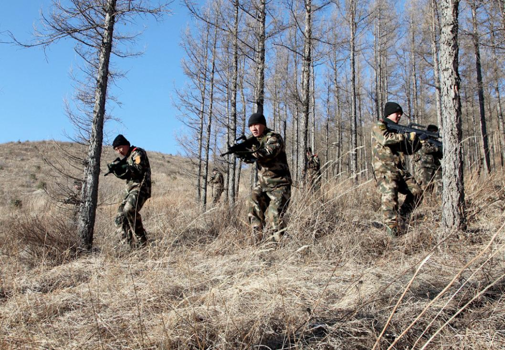 2015年3月11日,兴安盟公安边防支队阿尔山机动队在山里进行野外搜捕训练。
