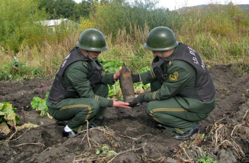2009年10月22日,武警内蒙古边防总队五岔沟边防工作站检查田间发现的侵华日军遗留的炮弹。