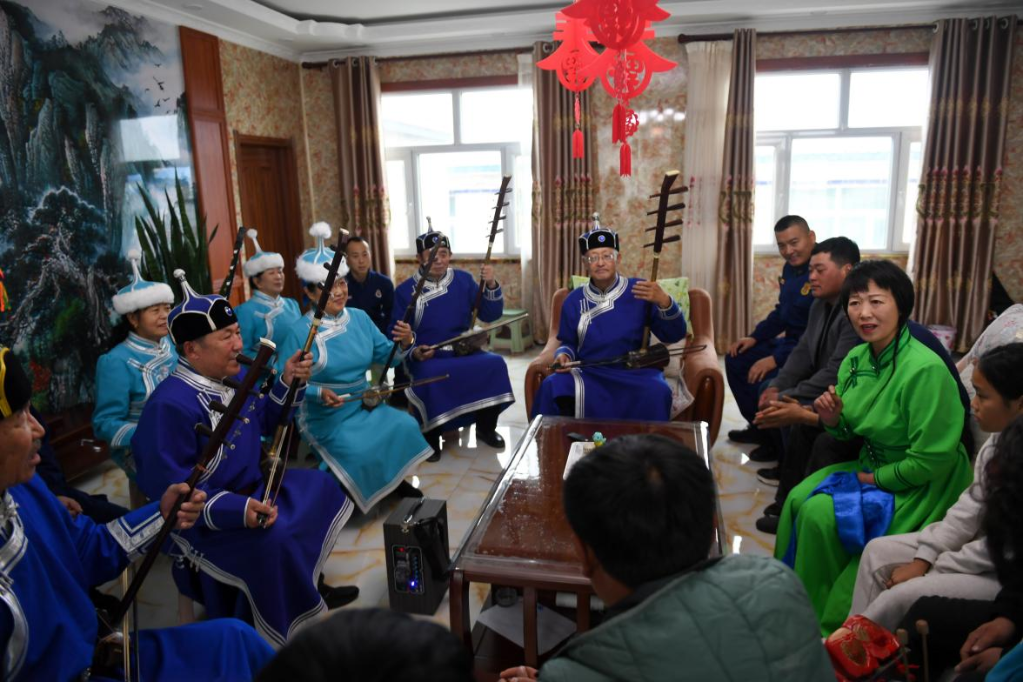 2019年 11月17日,消防“好来宝”义务宣传队为科尔沁右翼中旗西日道卜嘎查牧民进行表演。
