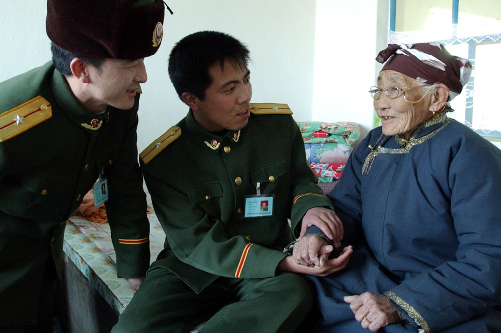 2003年2月24日,内蒙古公安边防总队兴安盟支队勿布林边防派出所慰问82岁蒙古族老人都特。