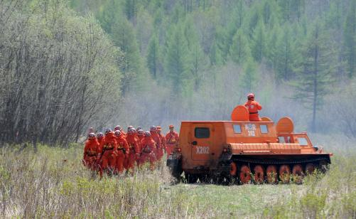 武警内蒙古兴安盟森林支队官兵在白狼林区靠前驻防训练(2013年5月23日摄)。