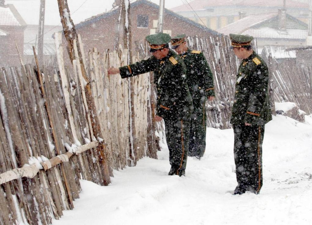 2004年4月1日清晨7点多,冒着鹅毛大雪,阿尔山市伊尔施公安边防派出所组织居民区安全检查。