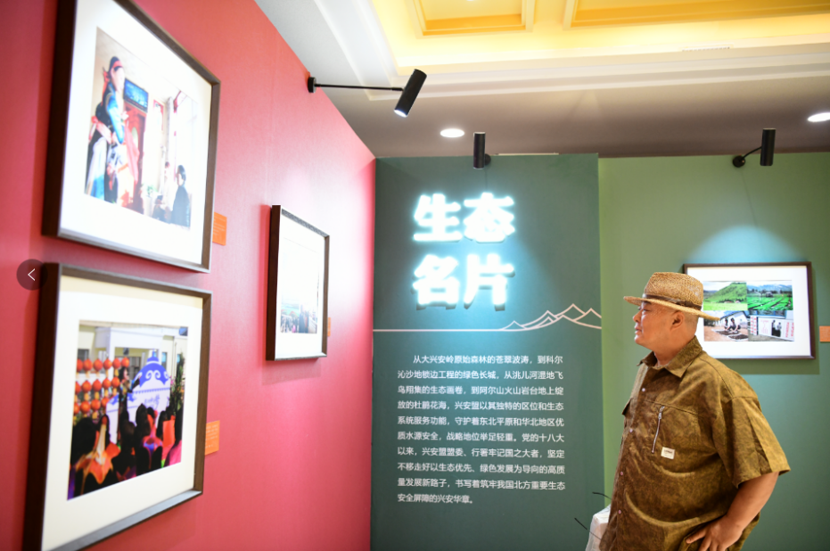7月8日,由兴安盟盟委、行署与新华社内蒙古分社联合推出的红色兴安 绿色发展——新华社镜头中的“岭上兴安”新闻摄影展在兴安盟乌兰浩特开展。
