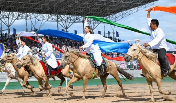 2023年8月9日,演员在2023兴安盟那达慕开幕式上表演。