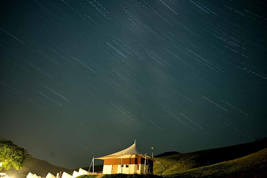 科尔沁右翼前旗乌兰毛都草原帐篷客营地的星空。(2024年7月19日摄)