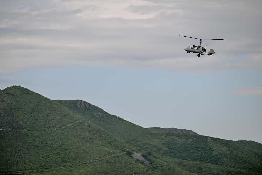 2024年8月8日,游客在兴安盟科尔沁右翼前旗乌兰毛都草原乘旋翼机游玩。