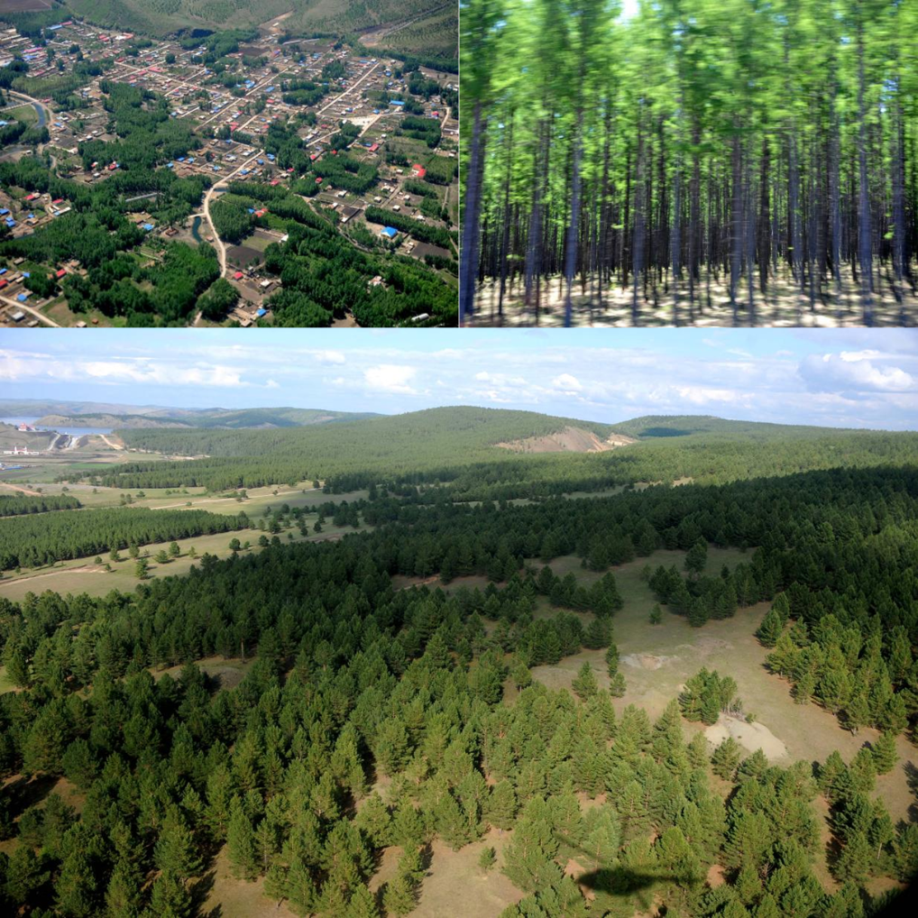 下图:位于内蒙古大兴安岭南部的红花尔基樟子松母树林基地鸟瞰(2011年6月3日摄)。