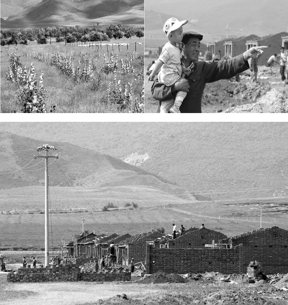 下图:生态移民新村敖包图新村正在兴建。