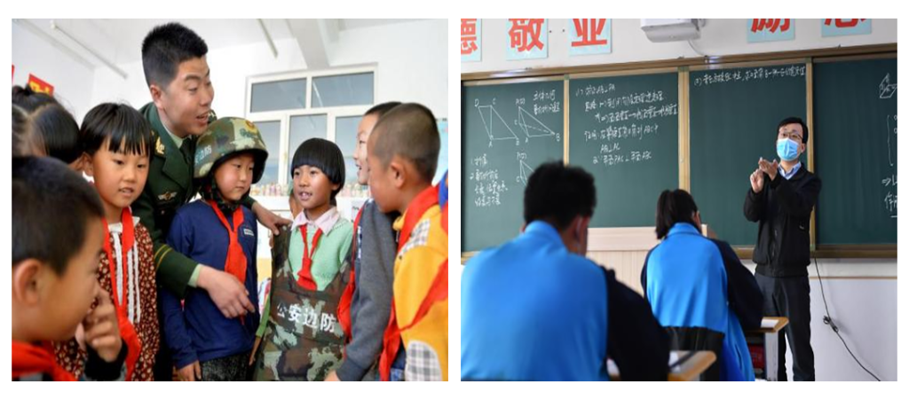 右图:2020年4月24日,北京市第二中学教育集团教师赵蒙在为阿尔山分校高三年级理科班学生上数学课。