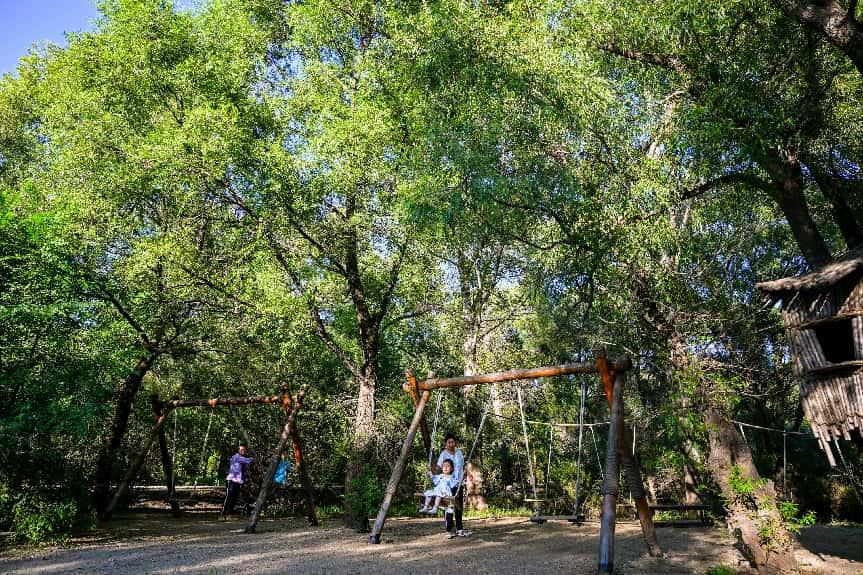 2023年8月13日,小朋友在家长的陪伴下在洮儿河国家湿地公园内玩耍。