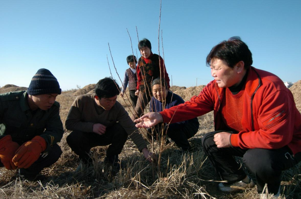 出生在兴安盟扎赉特旗的党员张美容(右一)退休后拿出自己的积蓄带领家乡贫困群众办起了扶贫联合体,发展农牧业、林业生产,使100多名贫困群众脱贫增收(2005年12月11日摄)。