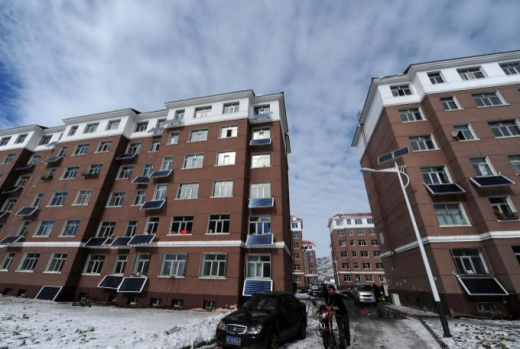 2012年10月26日拍摄的阿尔山林业局在伊尔施镇新建的棚改项目天元小区,林业职工和家属告别低矮、破旧的“板夹泥”土房迁入新居。