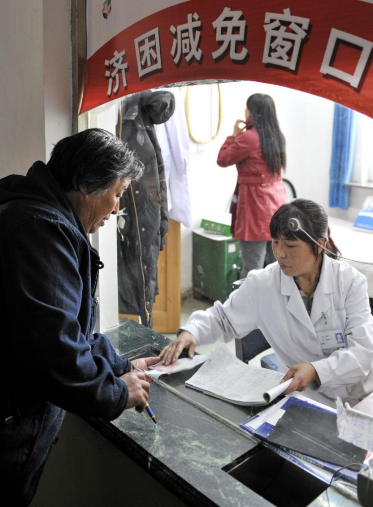 兴安盟科尔沁右翼中旗济困人民医院设立济困减免窗口,让生活困难群众享受减免部分费用待遇(2008年4月12日摄)。