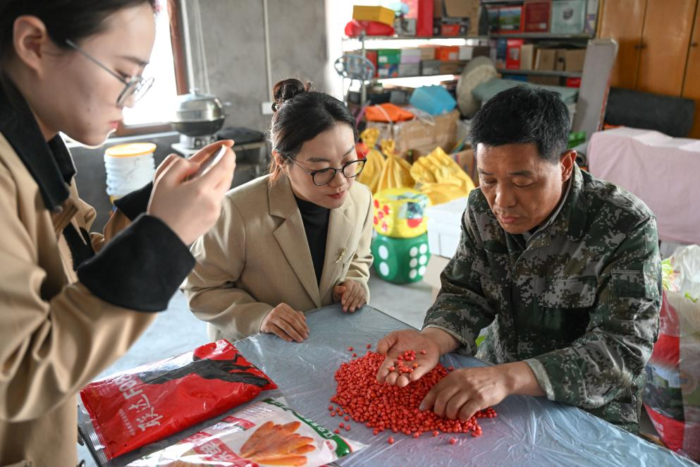 2025年4月11日,在科右中旗巴彦呼舒镇浩特化嘎查一户村民家中,乡镇干部在为“村闻联播”拍摄素材。