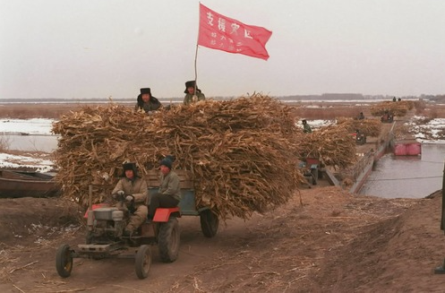1998年曾遭受洪灾的兴安盟地区连日来气温陡降。为确保灾区群众生活、生产顺利进行,当地政府为基层农牧民特困户送去御寒的衣被和逾冬饲料。这是重灾区扎赉特旗政府为特困户运送玉米秸杆饲料(1999年11月6日摄)。
